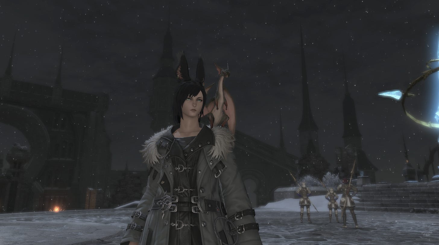 Knowing he’d died in the battle with the Garleans in Mor Dona, I wondered if he’d participated in the wars with the Ishgardians… Had he been in this city before? I watched his little head move around as he appeared to take in the sites.